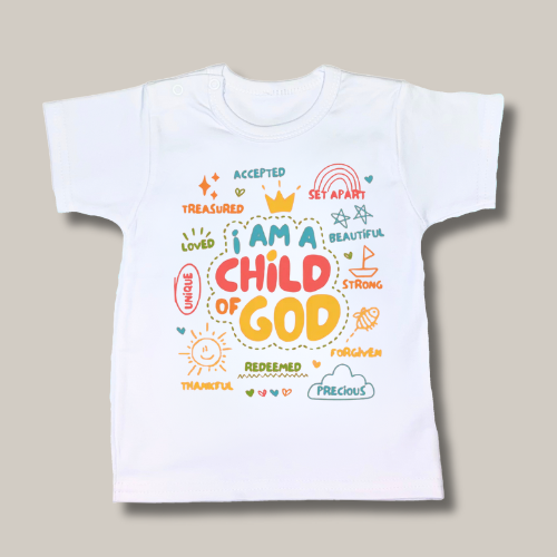 “Ik ben een kind van God en dit T-shirt laat iedereen dat zien! Met de vrolijke kleuren voel ik me lief, sterk en veilig – elke dag!