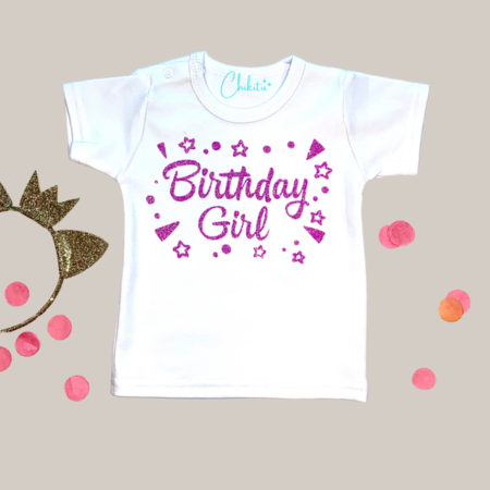 Meisjes Kinder T-shirt – Cute Baby Girl met Twee Curly Staartjes | met Naam